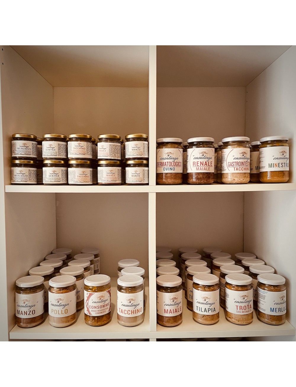 Realizzata artigianalmente dal Pappificio Pelitta di Modena con cura e amore, ideale per tutti i cani che alla crocchetta preferiscono un'alimentazione Casalinga. Preparata fresca e cotta direttamente nel vetro per preservarne le caratteristiche nutrizionali.