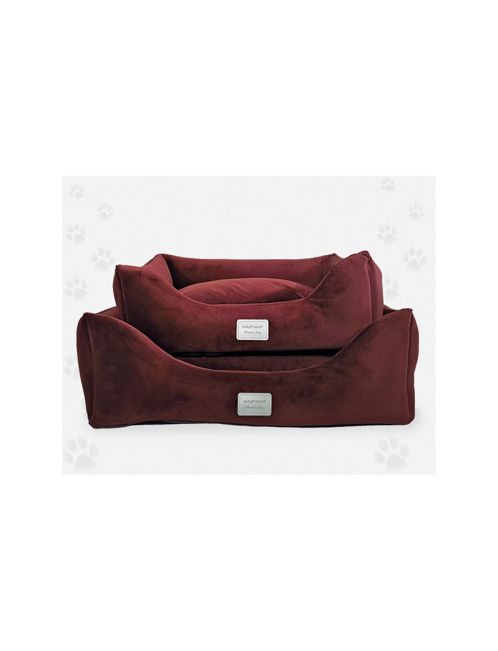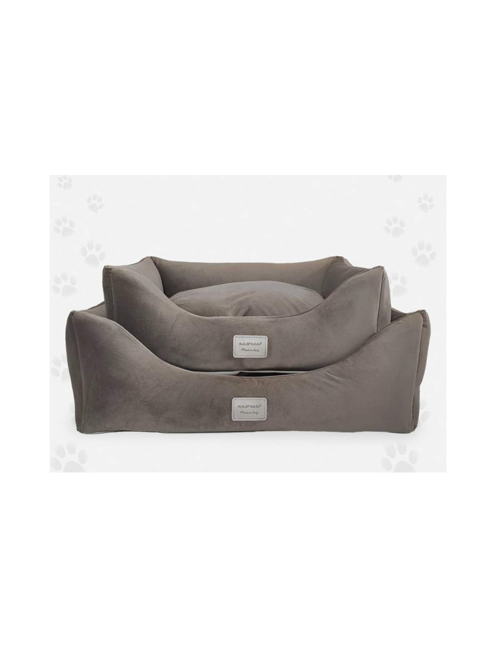 Cuccia 100% made in Italy, completamente sfoderabile, sia cuscino che la struttura, e lavabile.